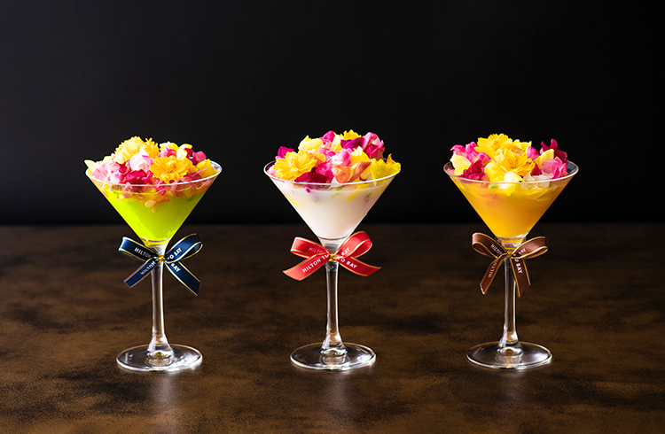 誕生石カラーをイメージした「Bouquet cocktail (ブーケカクテル)」は、月替わりでご用意しています。カクテルいっぱいに広がる花びらとグラスに結ばれたリボンは、まるで花束のようです。大切な人にサプライズでプレゼントするのもおすすめです。