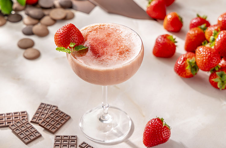 マンゴーストロベリーベースのミルクティーに、濃厚なチョコレートシロップ、苺、そしてマスカルポーネチーズを加えてブレンドした半フローズンドリンク。まるで苺のティラミスをグラスに閉じ込めたような、柔らかなコクと奥行きのあるデザート感覚の一杯です。