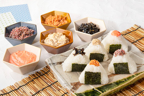(こんぶ、梅、鮭、明太マヨネーズ、ツナマヨネーズ、ゆかり、ちりめん、さんがフレーク)