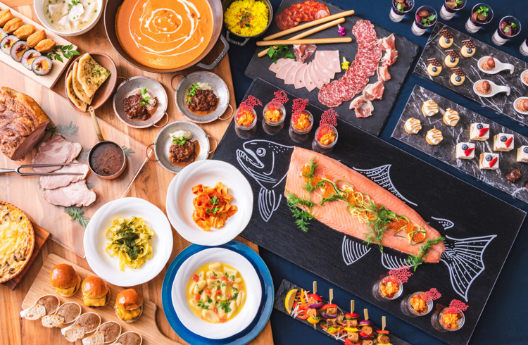 シェフが目の前で焼き上げる肉汁たっぷりの国産牛ハンバーグや、サラダバー、インド人シェフが手掛ける本格的なカレーステーション、ソフトクリームを含む充実したデザートステーションなど、食欲をそそるメニューの数々と飲み放題がセットになったプランです。