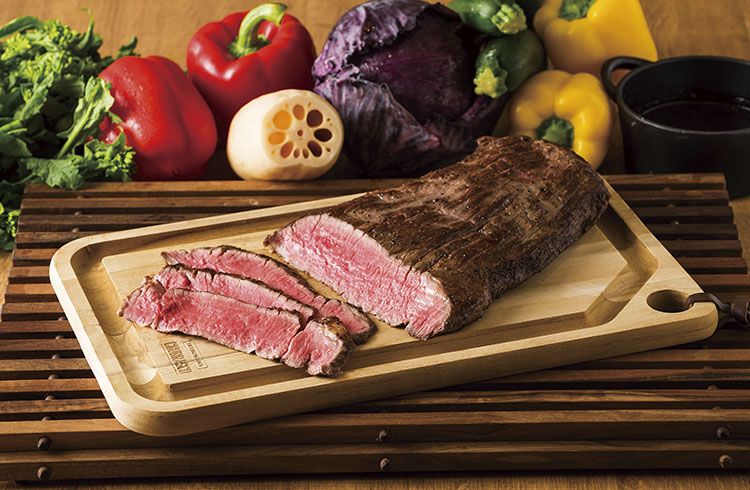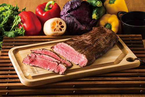4時間じっくりと低温調理した柔らかい「ローストビーフ寿司」と、バーナーで軽く炙って旨味をぎゅっと閉じ込めた香ばしい「炙りローストビーフ寿司」、おつまみとして楽しめる「ローストビーフ」の盛り合わせをご用意。対象のご人数分の肉寿司セットをスタッフがテーブルまでお持ちいたします。くちどけが良くミネラル豊富な天日塩「フルール・ド・セル」とともにご賞味ください。