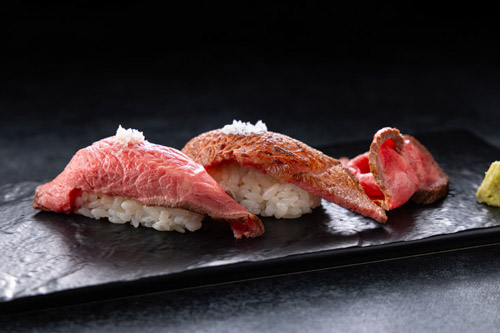 国産牛本来の旨味を楽しめる肉寿司は、土日祝日のディナータイムにて大人限定で提供いたします。