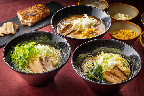 前菜は「ズワイガニと冬野菜のサラダ仕立て」や「カブのムース」などの冬の味覚を。ディナーには「冷製ブリのしゃぶしゃぶ」もお楽しみいただけます。温かいお料理は、サフランバターライスと味わうビーフシチューや、定番のバターチキンカレーや豊富なインド料理もご用意。ライブ・ステーションには、お好みの味で楽しめるシェフ特製の「ラーメン」が登場。ディナー限定ローストビーフもぜひご賞味ください。
