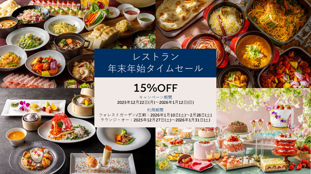 デザートビュッフェ付ランチコースや季節の食材を満喫いただけるディナーコースが期間中毎日15%OFF!
