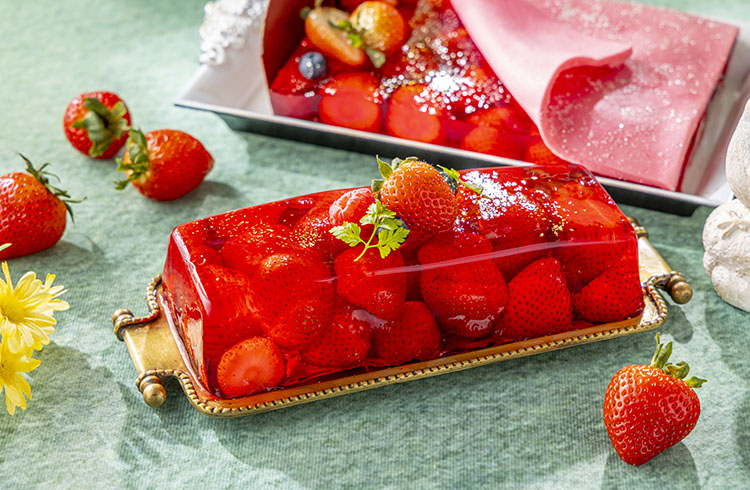 妖精のベッドをモチーフにした、夢のようなゼリーテリーヌ。ぷるんとしたゼリーの中に苺の果実をたっぷりと詰めた、見た目にも可愛らしい一品です。