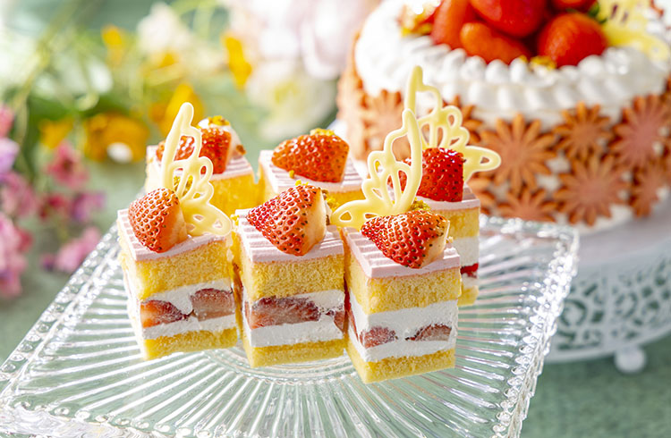 妖精の遊び心を表現した“苺堀り”パンナコッタや、苺みるくショートなど約20種類のスイーツを存分に